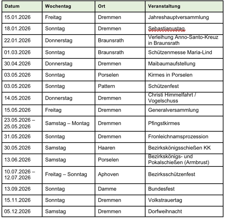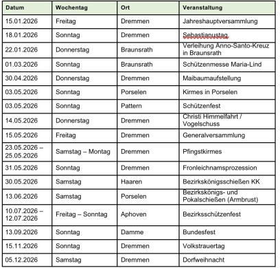 Alle Termine der Schützenbruderschaft im Überblick: (Änderungen vorbehalten)