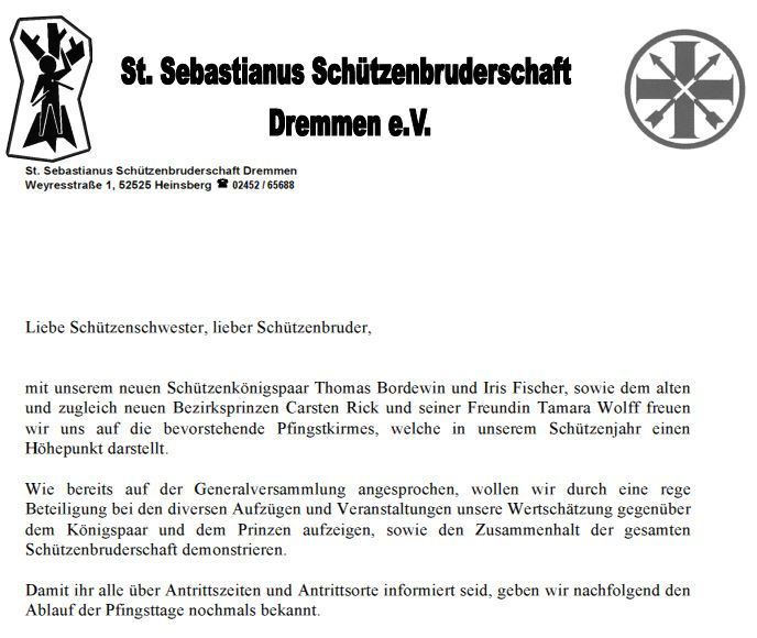 Schützenzettel Pfingsten 2016