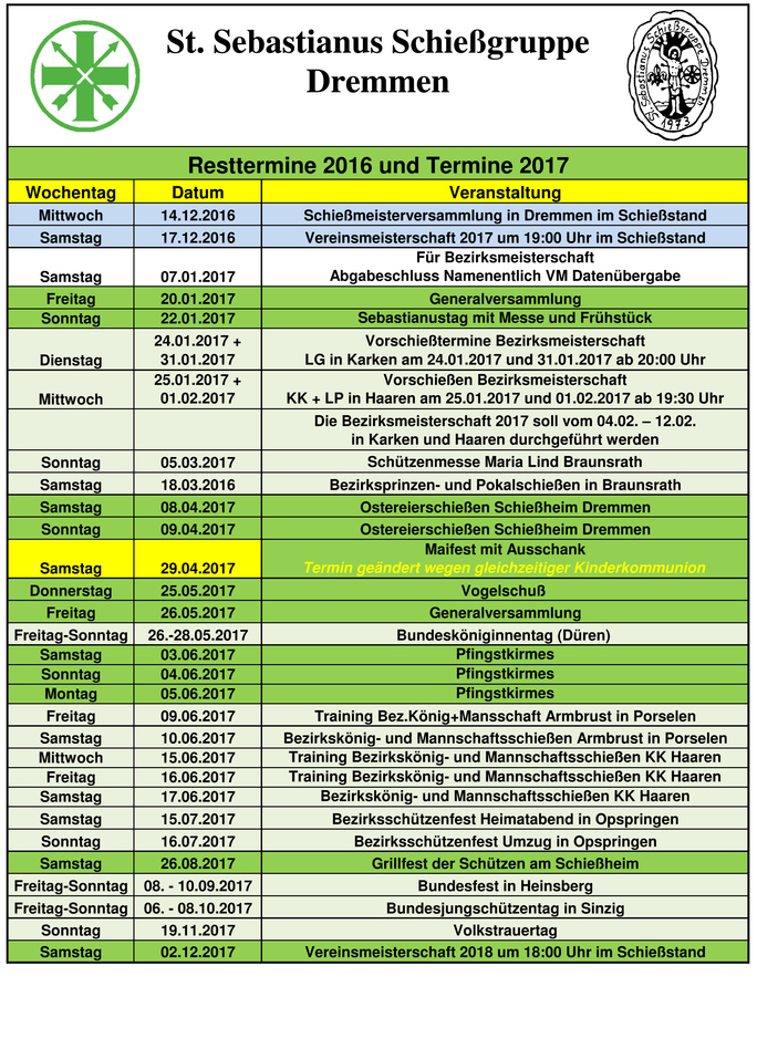 Verlosung Vogelschuss 29.05.2025 - Gewinnlose: